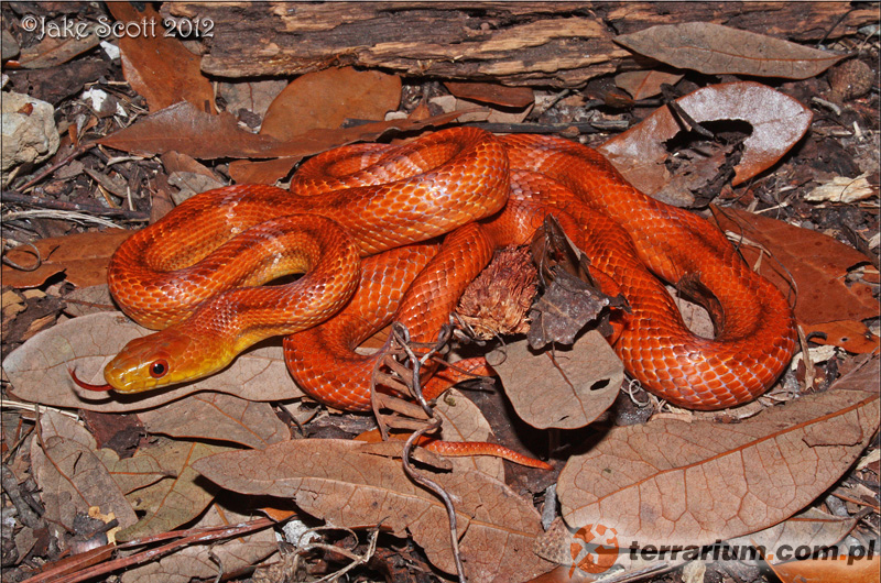 Hypomelanistic (prawie jednolicie pomarańczowy/jasnoczerwony wąż),
